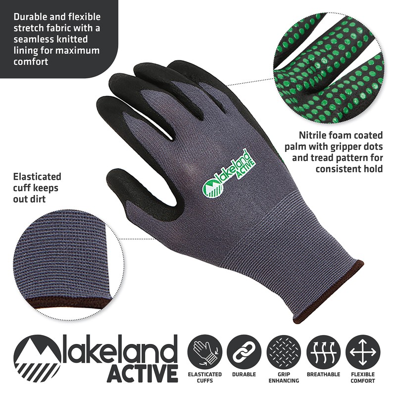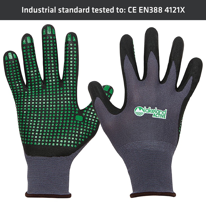 Lakeland Active Eskrigg Nitrile Palm Work & Garden Gripper Gloves - Grey - Small