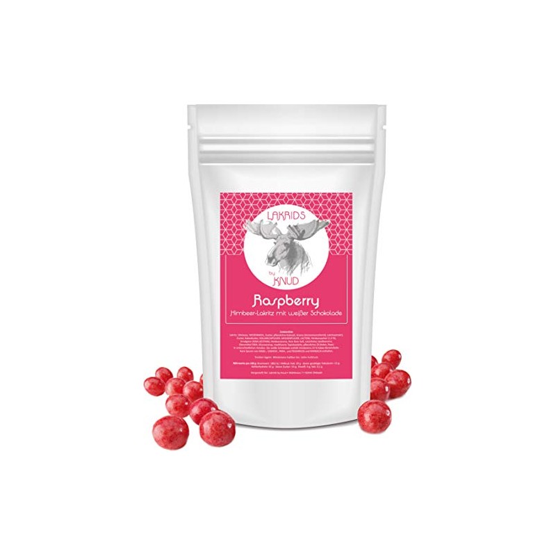 - Finest liquorice core coated with creamy white chocolate and raspberry powder coated