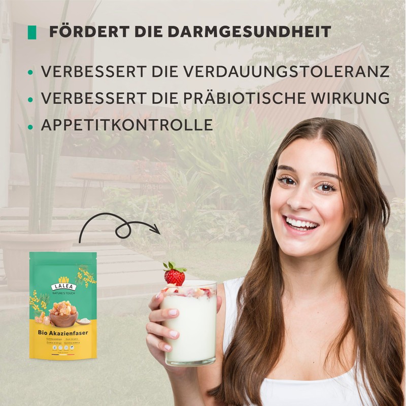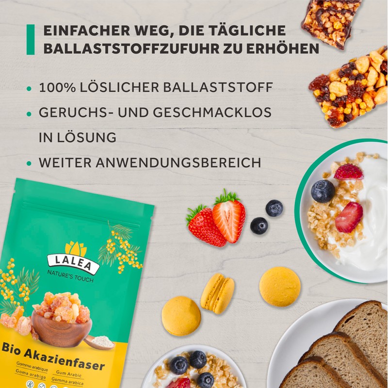 - Wide range of applications: The tasteless and odorless organic acacia fiber powder can be easily stirred into water, smoothies or muesli without changing the taste.