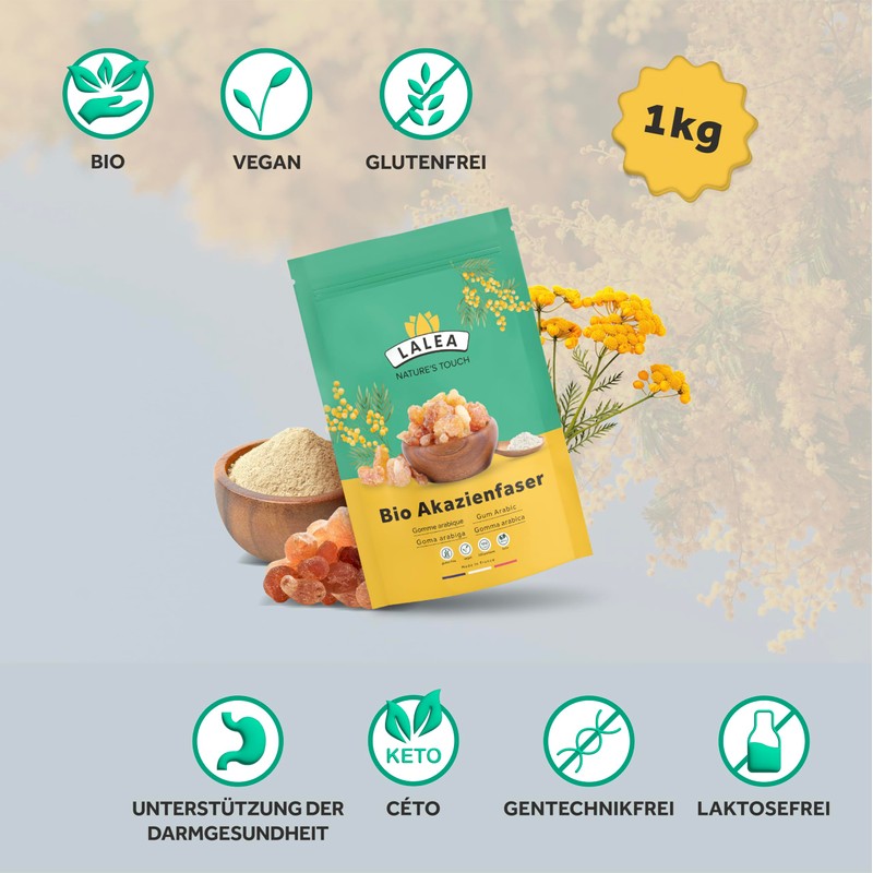 lalea Akazienfaser Pulver Bio C 1 Kg C 90% Ballaststoffe, ballaststoffe pulver aus akazienfasern Bio, Vegan & Keto, Glutenfrei, gummi arabicum pulver, fiber supplement