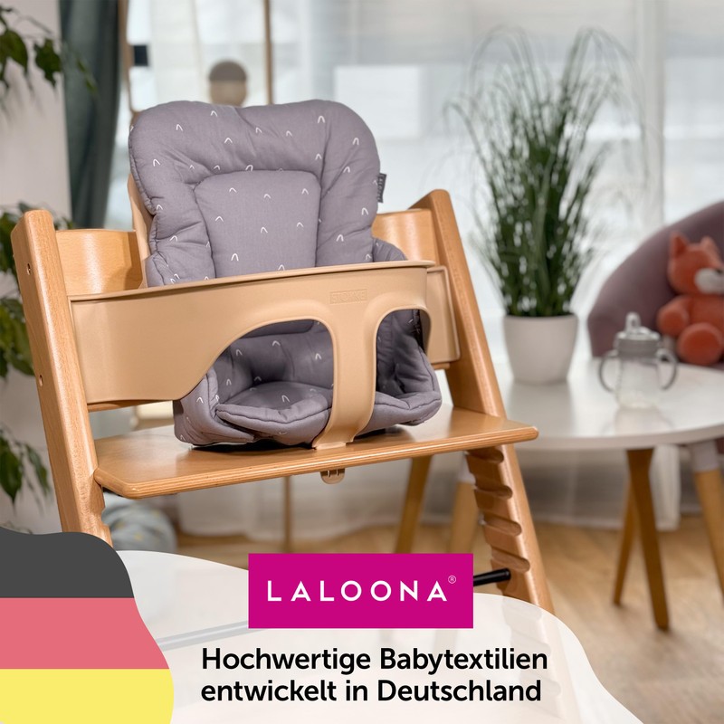 LaLoona Seat Reducer for Stokke Tripp Trapp High Chair - Soft Baby Seat Pad Made of Cotton, Oeko-Tex Standard 100 Tested and Machine Washable, Patterned - Grey