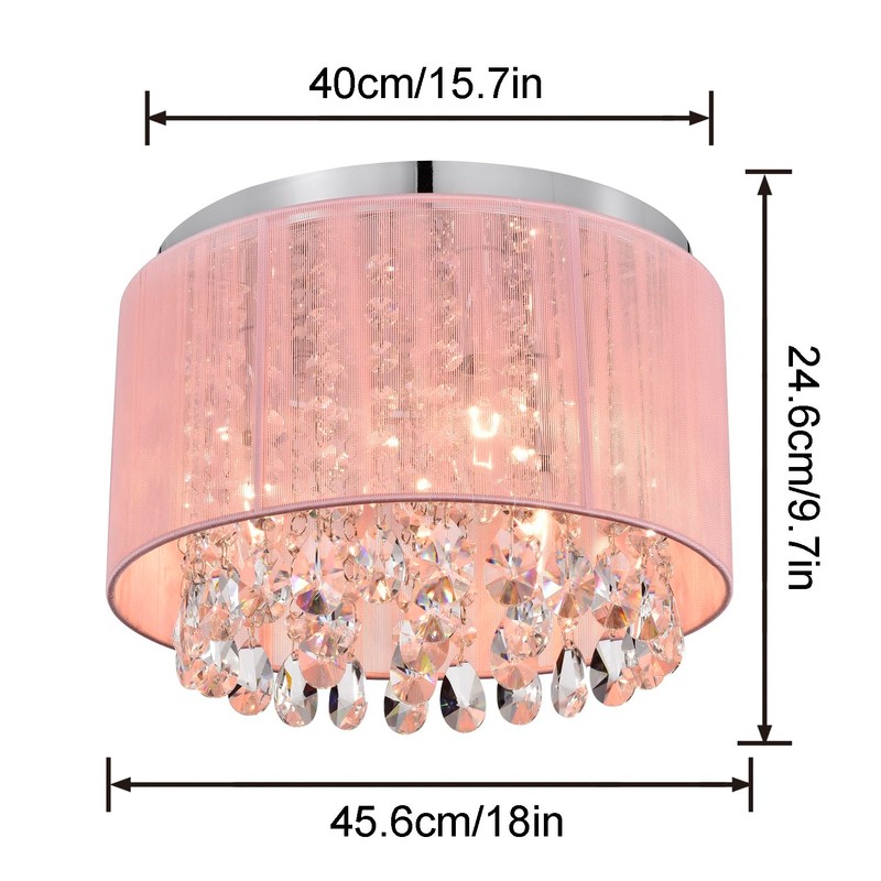 - Charming Princess-Inspired Design – Featuring a pink thread-wrapped shade and cascading crystal drops, this ceiling light brings a magical sparkle and soft elegance to any girl's bedroom or nursery.