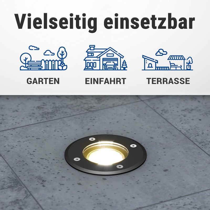 - IP67 water protection: the robust LED recessed floor light with rust-proof cover made of stainless steel in black is perfect for outdoor use