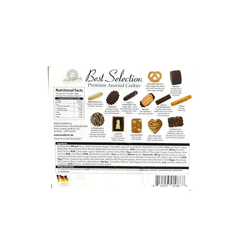 - Lambertz premium assorted cookies with dark, milk, and white chocolates