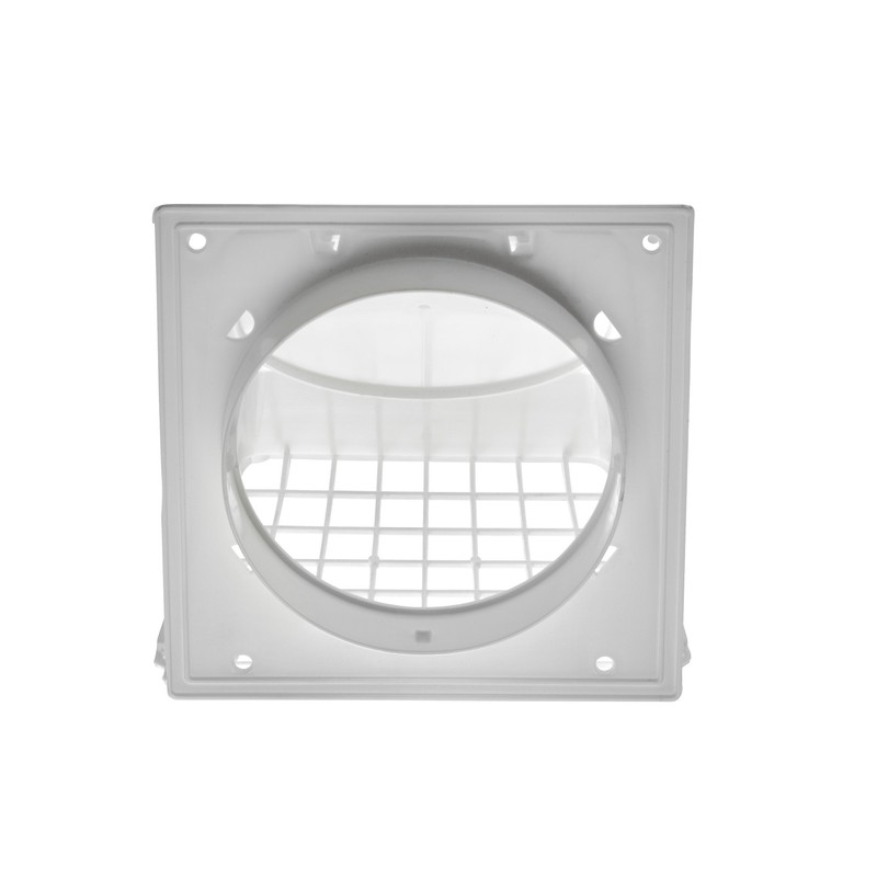 Lambro white plastic dryer vent hood with removable screen. Opening/closing damper prevents outside elements from entering the vent. UV inhibitor is used to help prevent the premature fading of vent. Dimensions: H 4.61” x L 5.7” x W 5.57”.