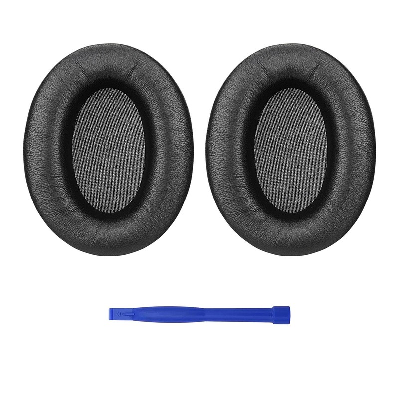 Lambskin Leather Ear-Pad Cushion Replacements for Sony WH-1000XM3 Headphones, with Soft-Touch Leather, Noise Isolation Memory Foam, Added Thickness (Black)