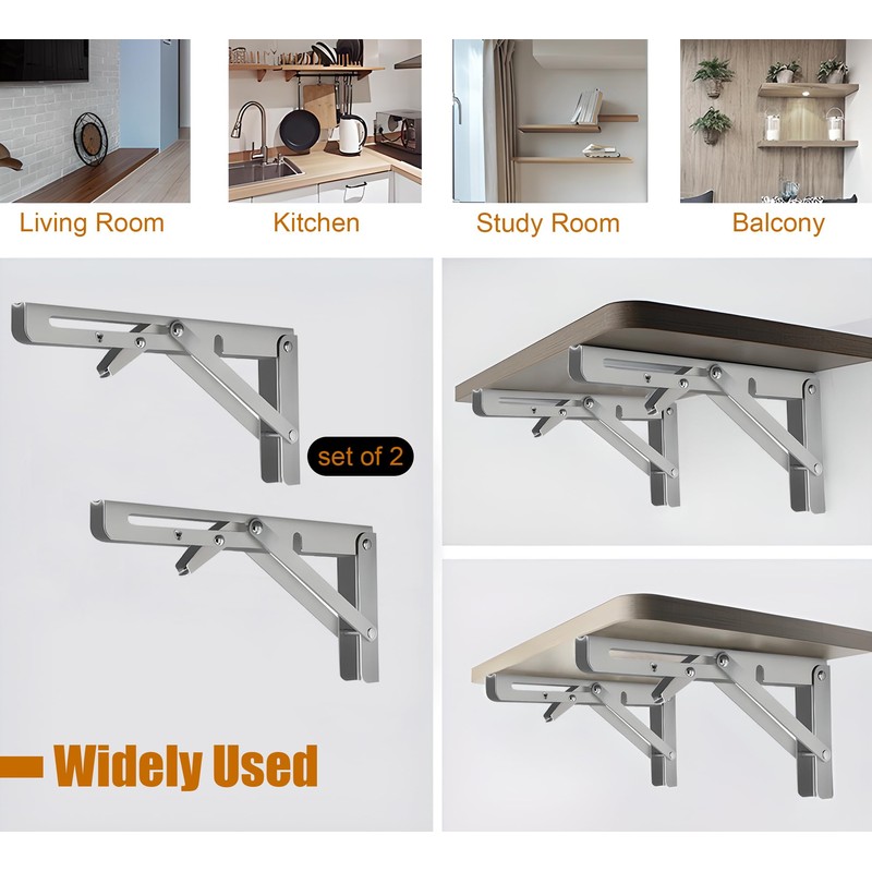 - 【Wide Applicability】: For Floating Shelves, This Heavy Duty Stainless Steel Folding Shelf Brackets can Bring You a Great Experience, They are Widely used in Spaces Such as Homes, Warehouses, Offices, Etc.