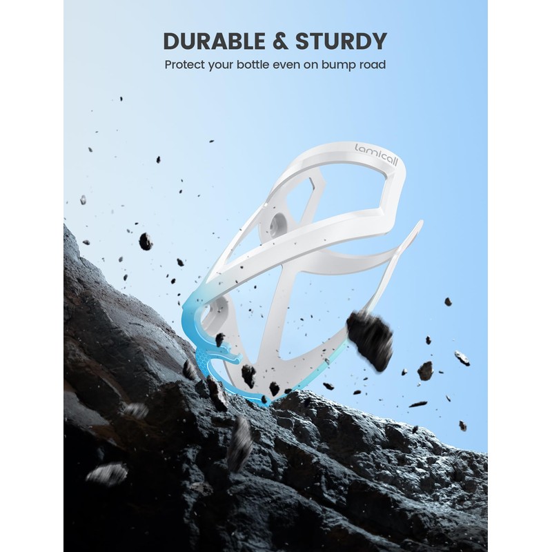 Lamicall Bike Water Bottle Holder - 1.2 Oz Ultralight & Sturdy Bike Cup Holder, Bicycle Drink Cage, Cycling Bike Water Bottle Cage with Screw Tool, for 2.75-3.94" Diameter Bottles, White