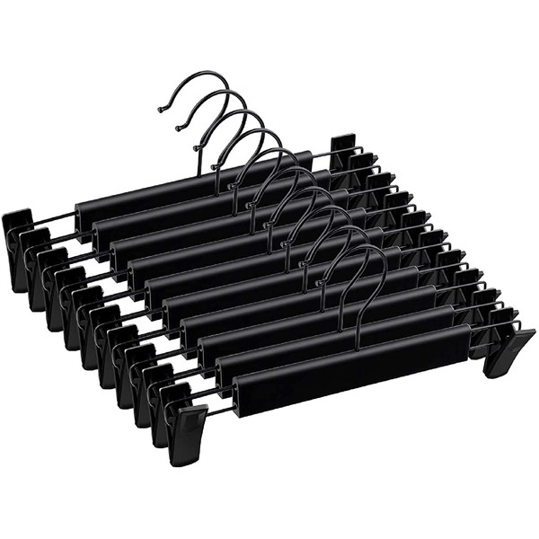 Lamitocs 10 Pack Pants Hangers with Adjustable Anti-Rust Clips for Pants, Skirts, Clothes Hangers Black