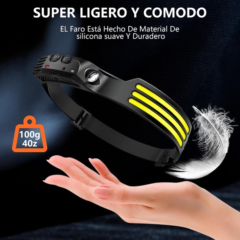 - 【6 modos de iluminación de faros delanteros】- Presione el botón de encendido para alternar, luz COB alta, luz COB baja, XPE alto, XPE bajo, modo estroboscópico y sensor de movimiento, presione prolongadamente el botón de encendido/apagado para cambiar al modo estroboscópico, luego XPE y las luces COB parpadearán al mismo tiempo, y el brillo de las dos tiras de luz puede proporcionar una mejor visión de iluminación.