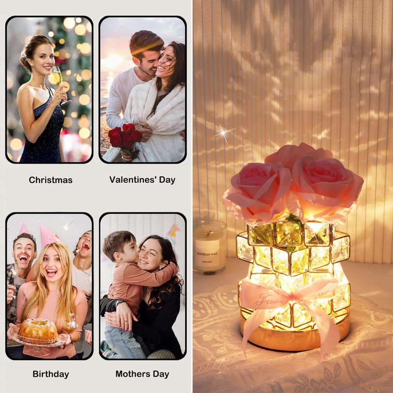 Lámpara de mesa LED de girasol con luz regulable, recargable por USB, táctil, para decoración del hogar, ideas de regalos (Rosas Rosas)