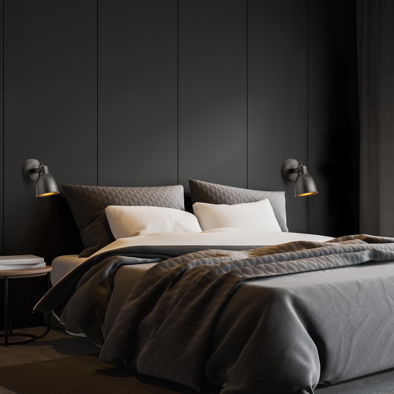 Lámpara de Pared OLIVER | Ideal para Cabeceras | Acabado Negro Mate | Pantalla de Metal | Compatible con Bombilla E26 60W (No Incluida) | Dimensiones 11.5x19.5x19 cm | MIDLAIT HOME