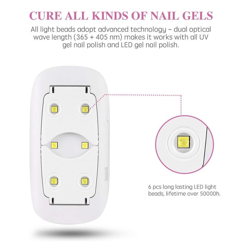 • Curar todos los tipos de los geles de uñas: -Todos los granos de luz adoptan tecnología avanzada. Longitud óptica dual de onda (365nm+405nm), funciona con todo el esmalte de uñas de gel UV y el esmalte de uñas de gel LED,incluido Builder, geles duros,escultura gel, pegamento de gemas,escultura gel y mucho mas. No hay requisitos de la marca. No hace falta preocuparse cambiar las bombillitas.