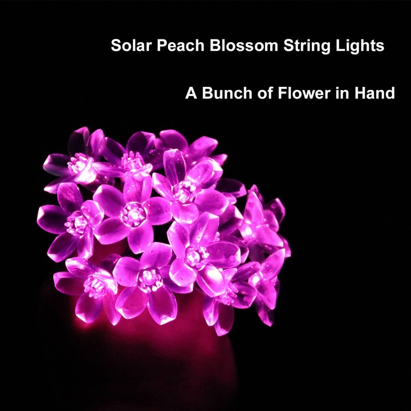 - Las luces solares con forma de flor de vidrio de melocotón tienen 50 luces LED brillantes, puedes ver algunas flores que brillan en tu jardín incluso en la temporada de invierno, para que tu patio sea animado durante todo el año.