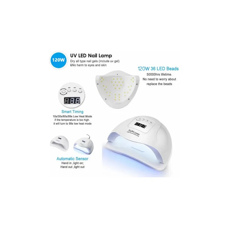 Lámpara UV/LED Profesional para Uñas 120W – Secadora de Gel, Blanca