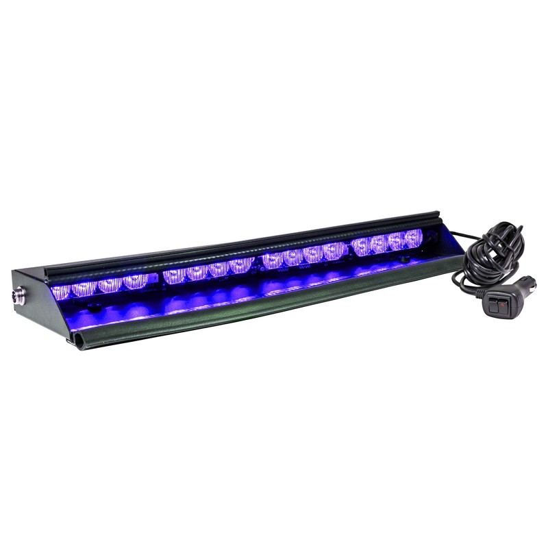 LAMPHUS SolarBlast 18" 16-Watt LED Emergency Visor Light - Driver Side [Universal Fit] [48 Flash Patterns] [12.5 ft Cord] [Plug-and-Play] Interior Dash/Windshield LED Strobe Light Bar - Blue
