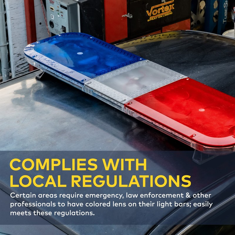 - COMPLIES WITH LOCAL REGULATIONS- Certain areas require emergency, law enforcement & other professionals to have colored lens on their light bars; easily meets these regulations.
