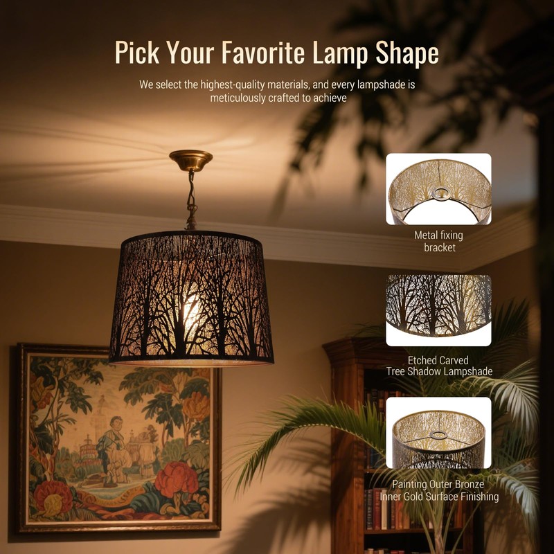 - Art Etched - Quality: Featuring the etching process with forest pattern to create a forest light shadow effect, whcih is quite unique, as if the sky is full of trees shining in your spaces for bedroom and living room.