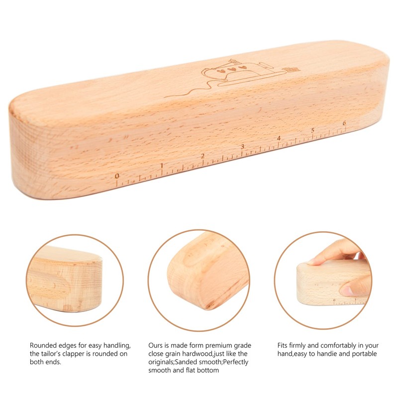 The Wooden Tailor Clapper 9.5x2x1.5 inches is great for daily use. The tailor's clapper is rounded on both ends and designed with side grooves for comfortable grasping IDEAL FOR: Garment making, quilting, sewing, ironing, especially great for necklines, shoulders, and sleeves