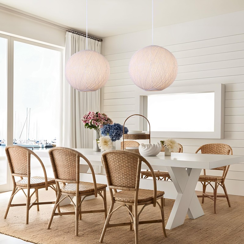 • [Adjustable Chain Length] This white boho pendant lights features a 59 inch hanging wire with adjustment knob; the entire fixture can be adjusted to a minimum of 19.2 inches and a maximum of 76.26 inches, allowing to freely adjust the hanging height based on different ceiling heights; additionally, the coastal pendant lights is suitable for flat ceiling, sloped ceiling, and arched ceiling, meeting a variety of installation needs