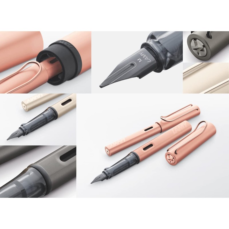 - The fountain pen is made of feather-light, anodised aluminium with precious metal details