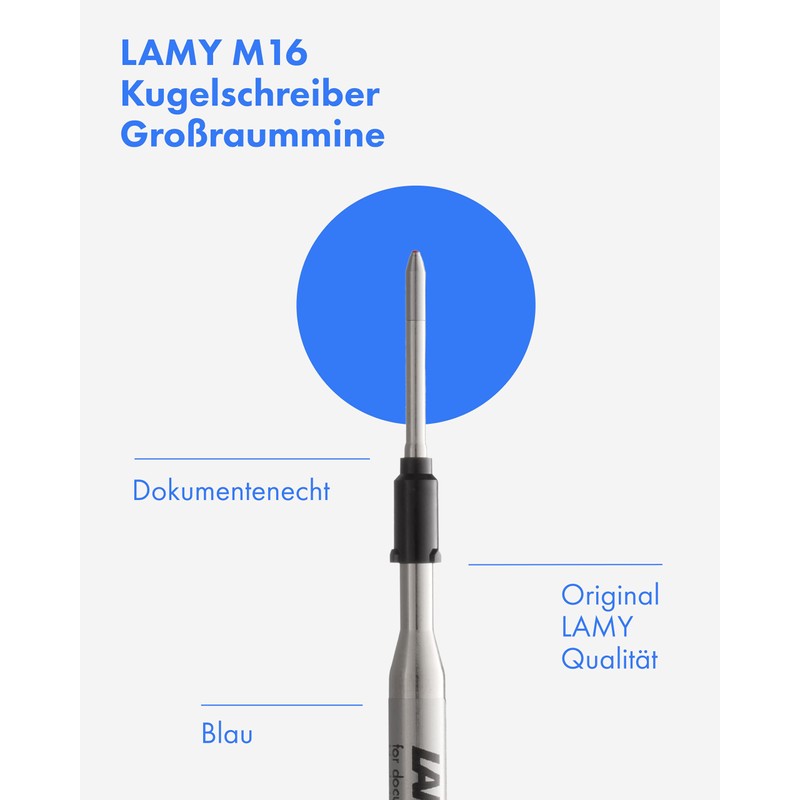 - Lamy Ballpoint pen refills M 16 are indelible in all colours and lead thicknesses: they impress with their high writing quality and tamper-proof writing