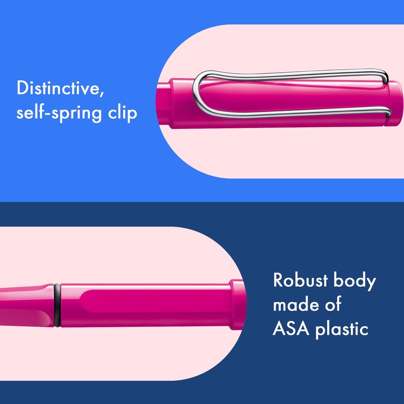 - AESTHETIC, ROBUST, INDIVIDUAL: The safari rollerball pen combines aesthetics, robustness and individuality. With its distinctive self-springing metal clip, its body made of durable ASA plastic and the countless colors, it sets standards in everyday writing.