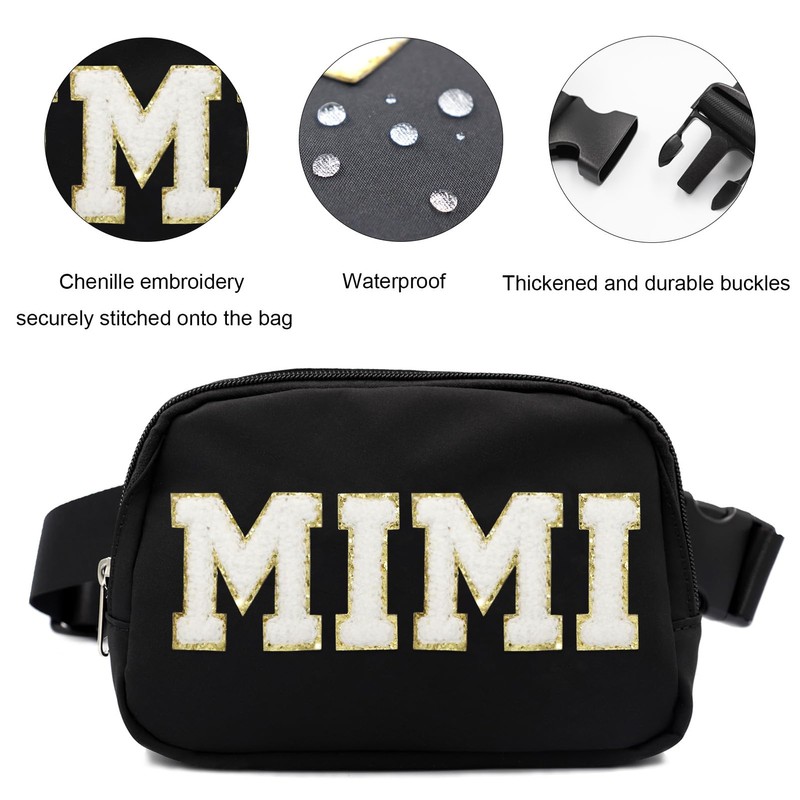 - 【Waterproof MIMI Fanny Pack】 Durable polyester resists spills while keeping the chenille letters vibrant – machine washable for messy grandkid adventures.