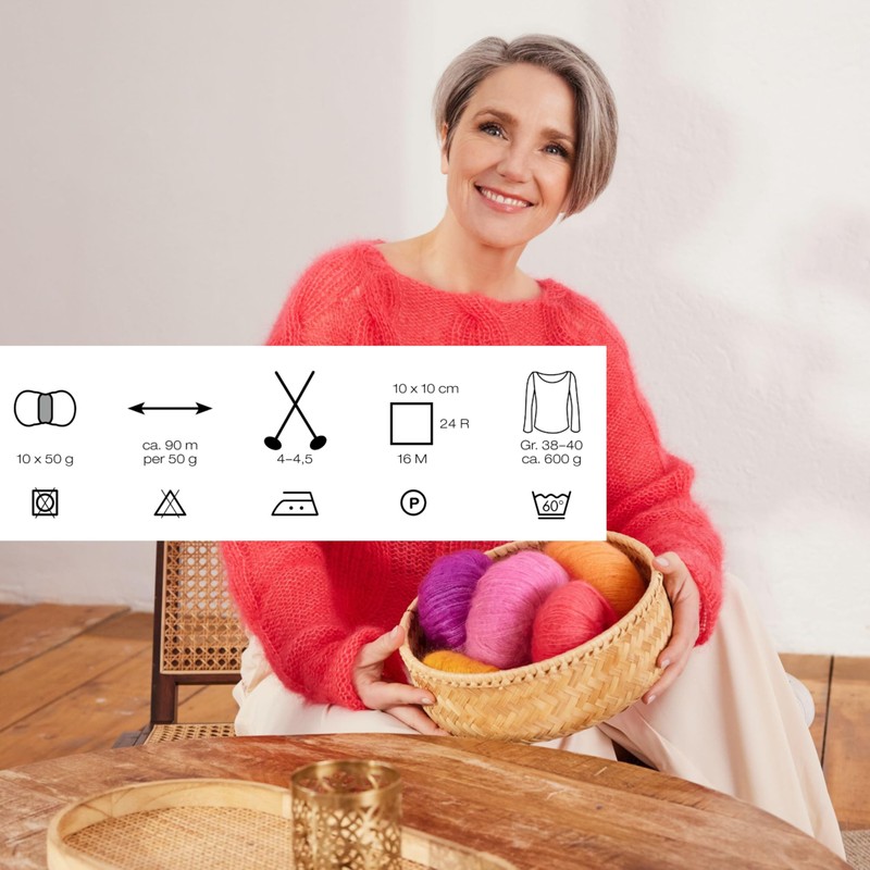 Tension sample: approx. 16 stitches x 24 rows on 10 x 10 cm.
