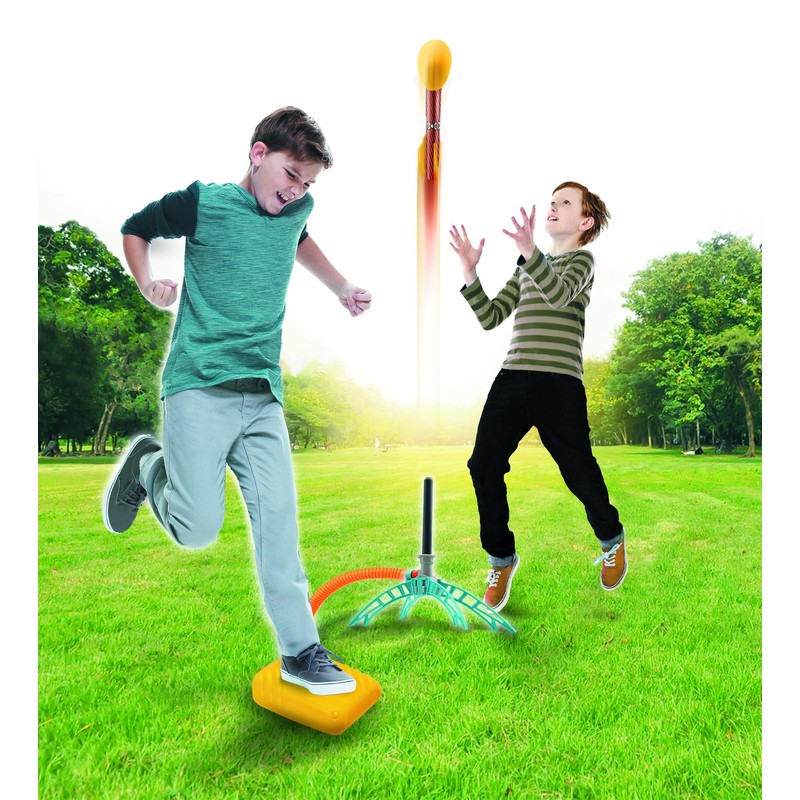 - Adjustable launcher provides different launching angles for various targeting games you can create. Simply load, stomp and launch! The harder you stomp, the higher they go! Using your physical strength and the power of air propels these rockets to soar sky high up to 90 feet (27 meters)!