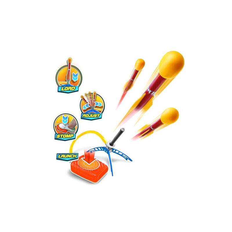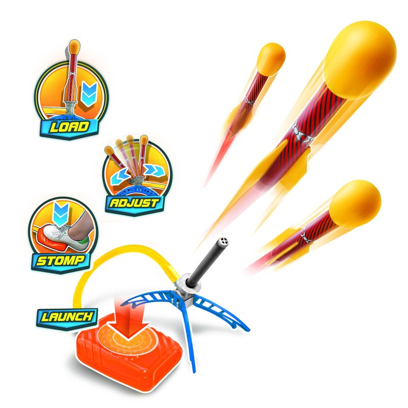 - Set includes an adjustable launcher, stomp pad and 3 high performance rockets.