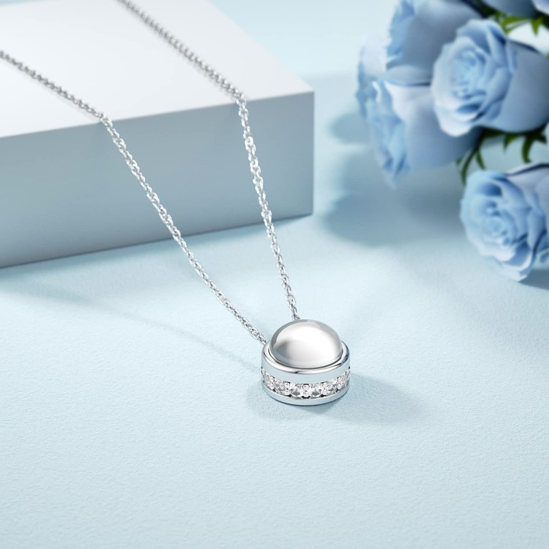 - ♥ Design Inspiration ♥ The dazzling sterling silver necklace features a shiny round cabochon gemstone and small zircons inlaid in the side of the pendant. Simple but elegant to wear. Stand out from the crowd with the LANBEIDE silver chain.
