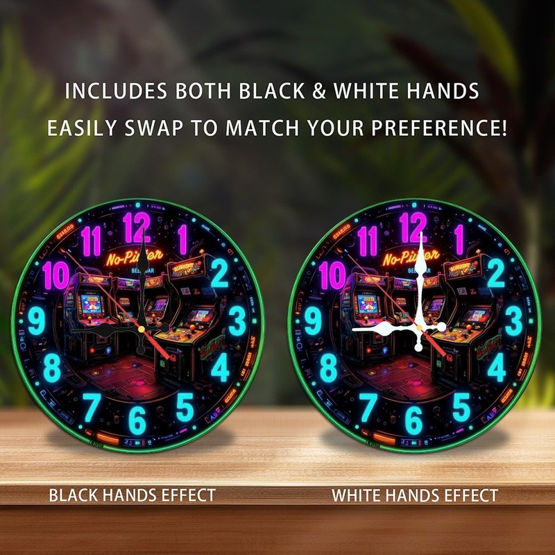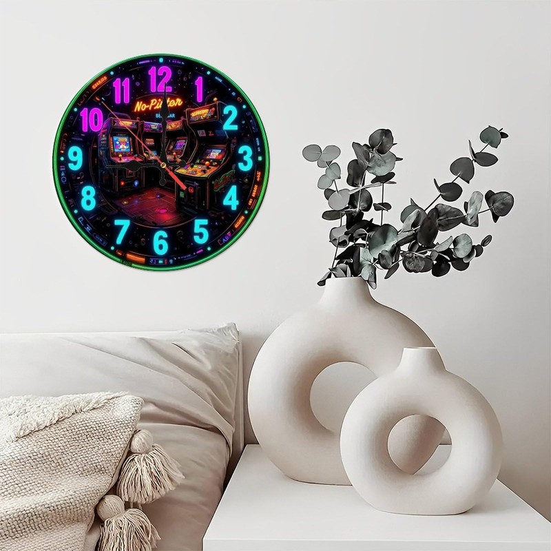 Lancholy Retro Arcade Clock Neon Sign Wall Art 10-Inch Wooden Wall Clock, Silent Movement, Battery Operated (AA Batteries Not Included), Artistic Home Decor, Perfect for Home Accents