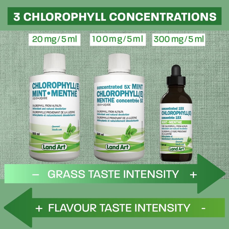 Land Art Liquid Chlorophyll Eucalyptus 500ml – Cold Extracted from Non-GMO Alfalfa - Detox - Alkaline – Antioxidant - Made in Canada