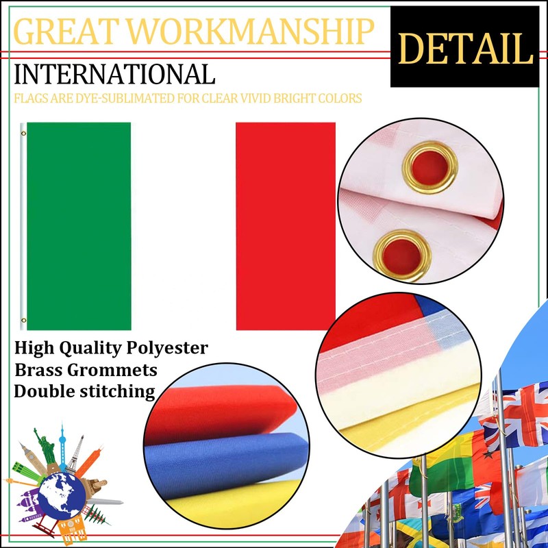 - Material: the flags are polyester fabric with bright colour, laser cutting and good stitching.