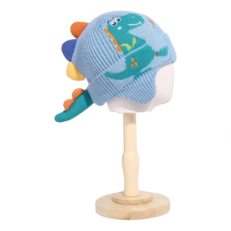 Landofgenie Knitted Beanie for Women Men Cute Dinosaur Winter Hat with Ear Protection Light Blue