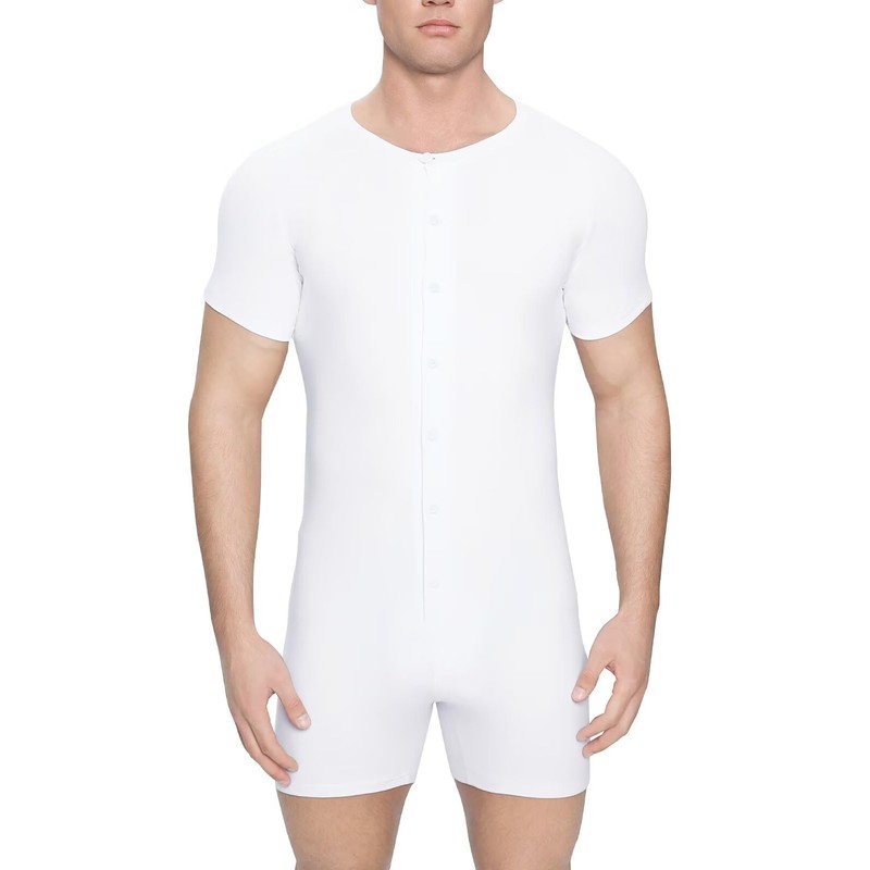 - Mens Short Sleeve Bodysuit: Chest button design for easy on and off, with raglan sleeves for more flexible shoulder movements. Classic round neck design, make you look more energetic.