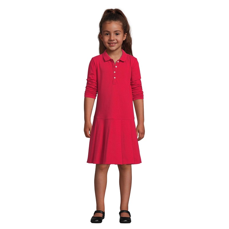 Lands' End Uniform Long Sleeve Pleated Mesh Polo Dress Red Kids 8