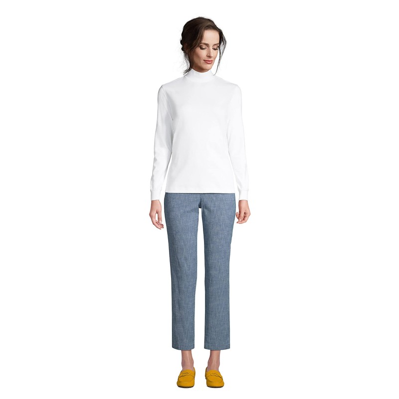 Lands' End Women Long Sleeve Relaxed Cotton Mock White Tall Small