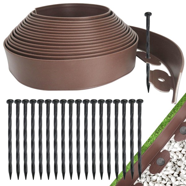 Landscape Edging Border No Dig, Plastic Edging for Landscaping, Garden Edging Border,Lawn Edging,Garden Borders,Flower Bed Edging,Rubberific Landscape Edging, (Plastic Stakes, Brown-100Feet)