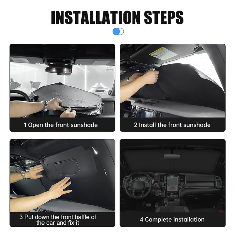 - 【High-quality appearance】: The Windshield sunshades are premium quality with high density UV reflective material, reinforced with high strength ductile wire and using heat reduction technology which blocks a 99% of harmful UV rays and heat.It can reduce your car’s interior temperature by 20-50 degrees.