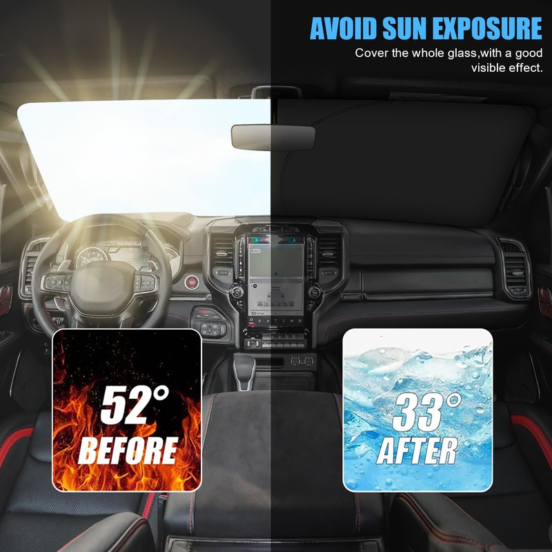 - 【Perfect Fit】:This windshield sun shade is Custom fit Dodge RAM 1500 2500 3500 2019 2020 2021 2022 2023 2024 2025.