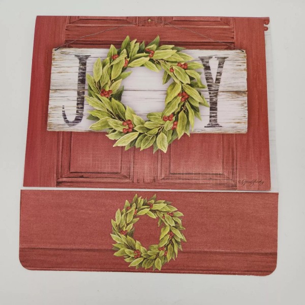 Lang 1 LANG Linen Gold Foil "JOY" Christmas Card Envelope+Stamp Red Door Green Wreath