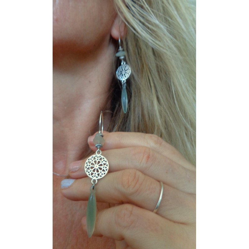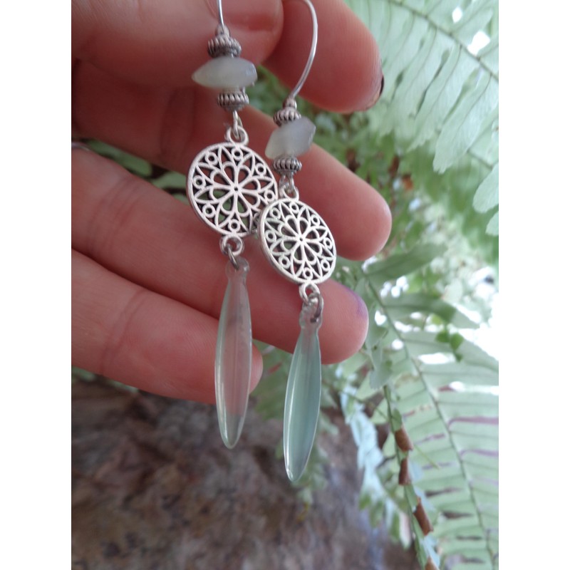 ⊹⊱❁ ✿ LANGE MANDALA KREISE MIT STEINSPLITTER & LANGEM ANHÄNGER ✿❁⊰⊹ verzierte Ohrringe in hellgrün, Jade, lindgrün