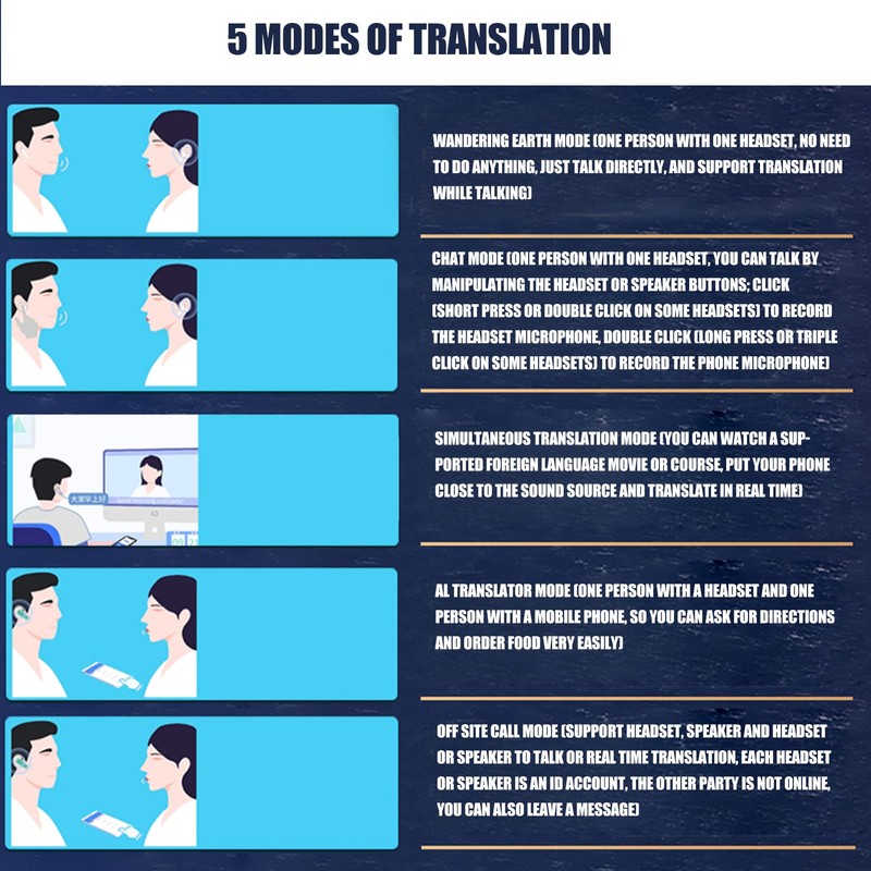 1.Wandering Earth mode (one person with one headset, no need for any operation, direct conversation, and support translation while speaking).