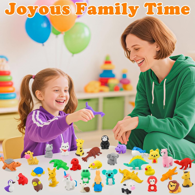 LanMa Animal Erasers for Kids 45 Pack Desk Pets Erasers for Kids Classroom Prizes,Easter Egg Fillers,Back to School Supplies,Party Favors Gifts