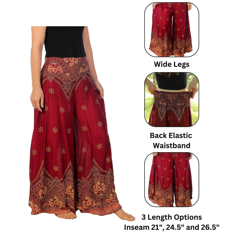 Lannaclothesdesign Palazzo Pants for Women Wide Leg Boho Harem Yoga Pants S M L XL Sizes (XL, Burgundy Peacock Flower)