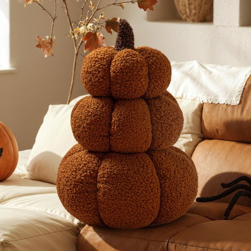 Lanpn 3D Stacked Fall Pumpkin Pillow, Halloween Decoration Plush Throw Pillow Soft Fleece Sherpa Cute 3D Shaped Cushion for Sofa Couch Bedroom Autumn Thanksgiving Halloween Decor (Brown, 9.1x15in)
