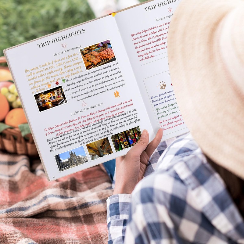 - đăPerfect Travel CompanionăPersonalize your memories of up to 15 trips in this travel journal notebook with a lay-flat spine for easy journaling.