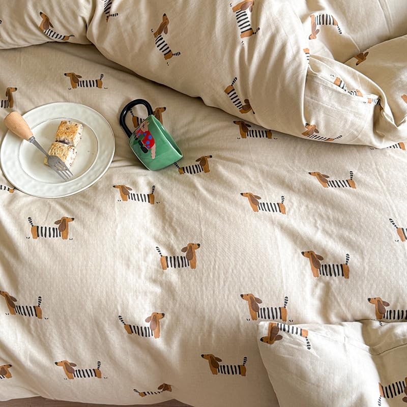 Lanqinglv Bed Linen 155 x 220 cm Children's Dachshund Light Brown Bed Linen Girls Boys Microfibre Oeko-Tex Bed Linen Set - Soft Duvet Cover with Zip and 1 Pillowcase 80 x 80 cm